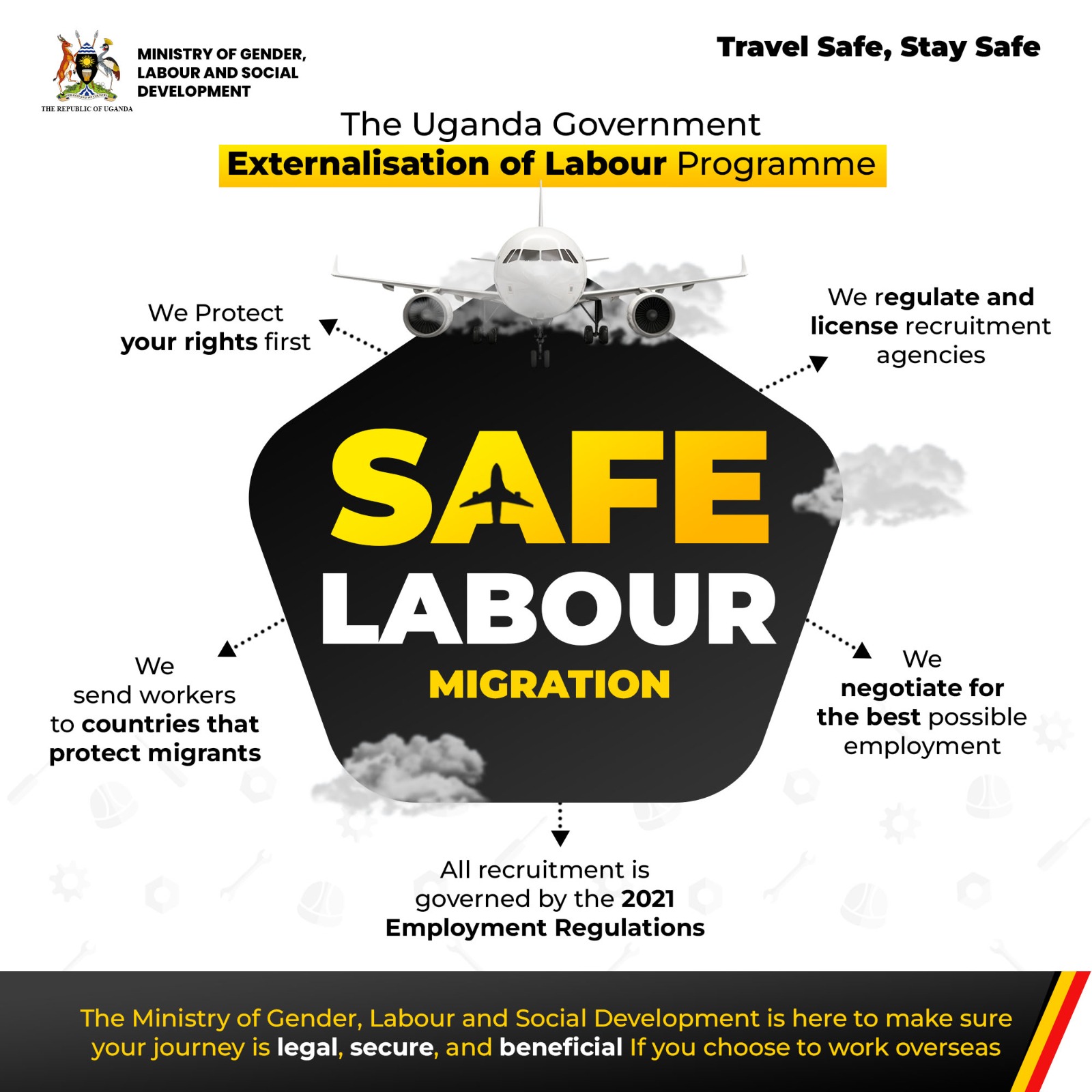 Launched under the theme “Travel Safe. Stay Safe,” the measures come at a time when overseas employment has become a critical safety valve for Uganda’s labour market. Since 2016, labour externalisation has created more than 280,000 jobs and generated about $1.3 billion in annual remittances, making it one of the country’s most important sources of foreign exchange. However, repeated reports of abuse, contract substitution, and trafficking have exposed the risks of weak oversight—prompting government intervention.