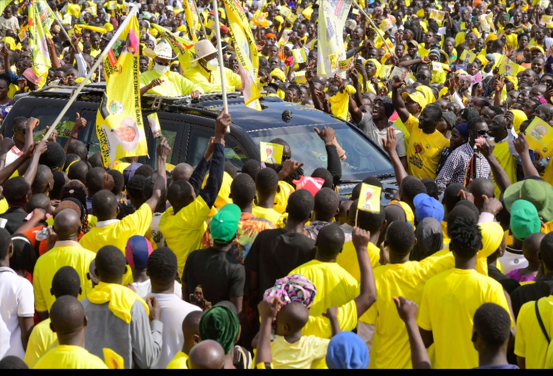 President Yoweri Kaguta Museveni, accompanied by the First Lady and Minister of Education and Sports, Maama Janet Museveni, today addressed thousands of residents at Kaiti Cell in Namutumba Town Council, reaffirming the NRM government’s commitment to peace, infrastructure development and household wealth creation.